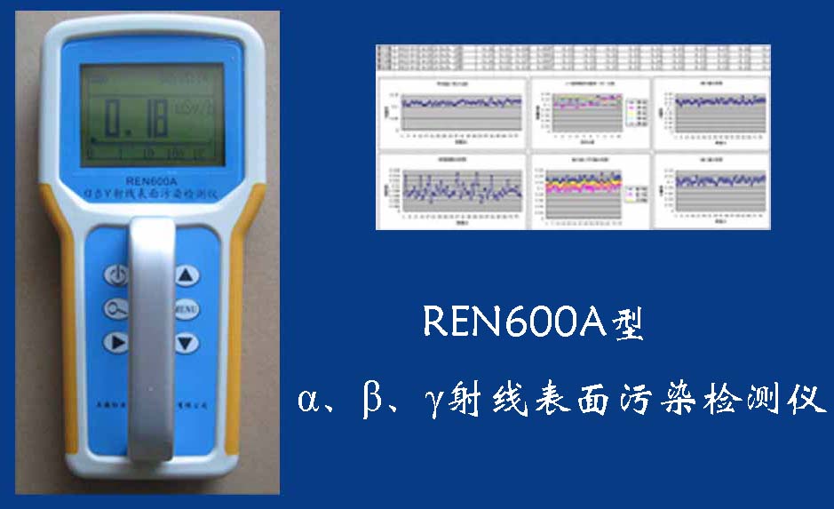 REN600A型α、β、γ射線表面污染檢測(cè)儀即可檢測(cè)α、β、γ射線,也能檢測(cè)到X射線,它采用高速嵌入式微處器作為數(shù)據(jù)處理單元,點(diǎn)陣式大屏幕LCD液晶顯示,讀數(shù)清晰、操作方便,具有400條超大容量數(shù)據(jù)存儲(chǔ)。儀器采用進(jìn)口的大面積MICA蓋革探測(cè)器,具有較高探測(cè)效率,可進(jìn)行α、β輻射表面污染檢測(cè)和X、γ輻射劑量率的監(jiān)測(cè)。此外通過(guò)配套的RenriCont表面污染管理軟件可將存儲(chǔ)的數(shù)據(jù)讀出后分析?蓮V泛用在制藥廠、實(shí)驗(yàn)室、發(fā)電廠、進(jìn)出口商檢、采石場(chǎng)、環(huán)境實(shí)驗(yàn)室、環(huán)境污染調(diào)查、核安全應(yīng)急、緊急狀況營(yíng)救站、金屬處理廠、地下油田、供油管道裝備、醫(yī)院核醫(yī)學(xué)科、同位素實(shí)驗(yàn)室、環(huán)境保護(hù)和警察局等部門。REN600A型α、β、γ射線表面